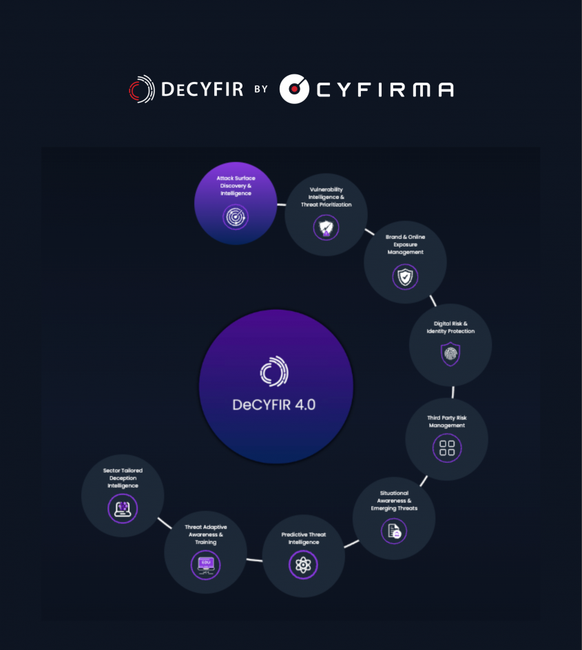 首頁 產品介紹 正在此頁面: Cyfirma 您正在尋找 GO 3 產品 詳細內容 Cyfirma DeCYFIR|外部威脅態勢與情報平台 詳細內容 Cyfirma DeTCT|數位風險偵測與攻擊面監控平台 詳細內容 Cyfirma DeFNCE|行動裝置數位防護平台